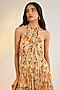Featuring a yellow maxi dress in georgette base with floral digital print, halter neck and ruched detail. Accentuate it with statement earrings and heels for a party or cocktail wear.