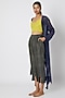 Featuring a cobalt blue calf length flowy cape jacket in chanderi cotton and cotton base. It has long sleeves. This contains only one piece.