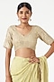 Featuring a dull gold blouse in chanderi base. It is paired with matching sharara pants and a dupatta.