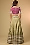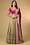 Featuring a green lehenga in banarasi base. It is paired with a blouse and a dupatta. Accentuate it with statement earrings and heels for a wedding, mehendi or sangeet ceremony.
