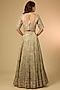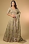 Featuring a green lehenga in banarasi tissue base. It is paired with a blouse and a dupatta. Accentuate it with statement earrings and heels for a wedding, mehendi or sangeet ceremony.