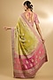 Featuring a green and pink saree in georgette base. It is paired with a silk blouse. Accentuate it with statement jewellery and heels for a wedding, sangeet or engagement ceremony.