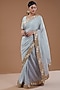 Featuring an ice blue saree in georgette base with mukaish detail. It is paired with a blouse. Accentuate with statement jewellery and heels for a festive or wedding ceremony.
