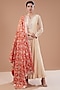 Featuring an ivory anarkali in chanderi silk base. It is paired with churidar pants and an orange banarasi dupatta. Accentuate with dangler earrings and heels for a festive or wedding ceremony.