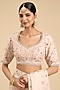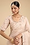 Featuring an ivory saree in organza base with work. It is paired with a blouse. Accentuate it with kundan or meenakari jewellery, a sleek floral hairdo and block heels for a complete look, perfect for wedding, sangeet or engagement ceremonies.