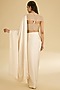 Featuring an ivory saree in satin silk base. It is paired with a blouse. Accentuate it with statement jewellery and heels for a wedding, sangeet or engagement ceremony.