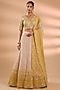 Featuring an ivory and yellow lehenga in chikankari base. It is paired with a silk blouse and a chikankari dupatta. Accentuate it with gold jhumkas and strappy heels for a wedding or a haldi ceremony.