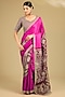 Featuring a magenta saree in gajji silk base. It is paired with a blouse. Accentuate it with statement earrings and heels for a wedding or sangeet ceremony.