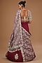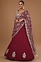 Featuring a maroon lehenga saree in crushed silk base with an attached drape. It is paired with an embroidered blouse. Style it with statement jewellery and heels for a wedding or engagement ceremony.