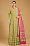 Featuring a mehendi green anarkali in chikankari base. It is paired with pants and a georgette bandhani dupatta. Accentuate with statement earrings, block heels and a sleek clutch for an effortless ethnic look, perfect for a mehendi ceremony or festive occasion.