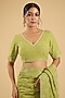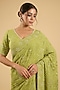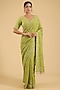 Featuring a mehendi green saree in georgette base with chikankari embroidery. It is paired with a blouse. Accentuate it with zircon necklace set and embellished heels for a festive occasion, mehendi or sangeet ceremony.