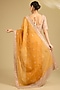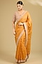 Featuring a mustard saree in organza base. It is paired with a blouse. Accentuate it with statement earrings and heels for a wedding, haldi or sangeet ceremony.
