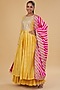 Featuring a mustard long kurta in silk base. It is paired with sharara pants and a fuchsia dupatta. Accentuate it with statement jewellery and heels for a bridal look.