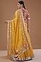 Featuring a mustard yellow lehenga in cotton base with gota embroidery and an attached dupatta. It is paired with a blouse. Accentuate with statement earrings and heels for a wedding or engagement ceremony.
