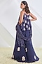 Featuring a navy blue spaghetti kurta in organza base with mukaish embellishment. It is paired with matching crushed silk sharara pants and a bandhej dupatta. Perfect wear for any occasion, from weddings to festive celebrations and cultural gatherings.