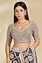 Featuring a navy blue saree in gajji silk base. It is paired with a blouse. Accentuate it with gold jewellery, embellished heels and a clutch for a festive occasion, sangeet or a wedding ceremony.