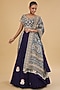Featuring a navy blue crushed lehenga in silk base. It is paired with a blouse and a bandhani dupatta. Accentuate it with statement jewellery and heels for a bridal look.