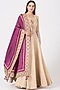 Featuring a nude anarkali in chanderi base. It is paired with a contrasting pink bandhani dupatta.