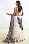 Featuring an off-white lehenga saree in crushed cotton base with a contrasting attached dupatta. It is paired with a matching blouse. Perfect wear for any occasion, from weddings to festive celebrations and cultural gatherings.