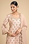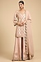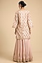 Featuring an onion pink kurta in dupion silk base with embroidery. It is paired with sharara pants and a bandhani dupatta. Style it with kundan polki earrings and block heels for festive occasions or sangeet functions.