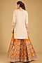 Featuring an ivory kurta in chikankari base. It is paired with orange sharara pants and a moonga dupatta. Accentuate with statement earrings, block heels and a sleek clutch for an effortless ethnic look, perfect for a wedding ceremony or festive occasion.