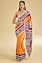 Featuring an orange and red saree in gajji silk base. It is paired with a blouse. Accentuate it with statement jewellery and heels for a wedding, sangeet or engagement ceremony.