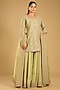 Featuring a pista green kurta in dupion base. It is paired with sharara pants and an organza dupatta. Accentuate with statement earrings, block heels and a sleek clutch for an effortless ethnic look, perfect for a wedding ceremony or festive occasion.