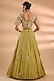 Featuring a pista green lehenga in silk base. It is paired with a blouse and a gajji silk dupatta. Accentuate it with kundan polki earrings and strappy heels for a wedding or a mehendi ceremony.