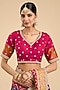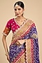 Featuring a purple saree in bandhani silk base with patola print. It is paired with an embroidered blouse. Accentuate it with kundan or meenakari jewellery, a sleek floral hairdo and block heels for a complete look, perfect for wedding, sangeet or engagement ceremonies.