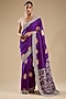 Purple Silk Printed & Embroidered Saree Set