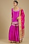 Featuring a rani pink kurta in silk base. It is paired with gharara and a dupatta. Style this designer set with chandbali earrings and block heels for weddings, sangeet ceremony or grand festive celebrations.