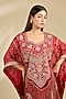 Featuring a red and pink kaftan in gajji silk base. It is paired with pants. Accentuate it with pearl jewellery, embellished heels and a clutch for a festive occasion or a pre-wedding ceremony.