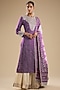 Featuring a purple kurta in gajji base with print and embroidery. It is paired with white cotton sharara pants and a gajji dupatta. Accentuate it with kundan polki jewellery and embellished heels for a sangeet or wedding ceremony.