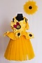 Yellow Tulle & Silk Embroidered Dress For Girls