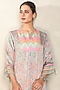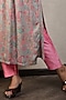 Featuring a grey tunic in modal satin base with print and hand embroidery. It is paired with matching viscose silk pants.