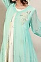 Featuring a mint green jacket dress in chanderi silk base with block print and embroidery. It is paired with matching inner.