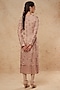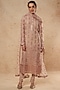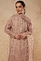 Featuring a beige kurta in georgette base with gold foil and silk thread work. It is paired with matching crepe churidar pants and a tulle dupatta having foil detailing.