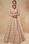 Featuring a blush pink lehenga in tulle base with silver foil and silk thread work. It is paired with a matching blouse and a dupatta having foil detailing.