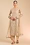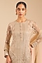 Featuring a beige and gold kurta in foil base with embroidery. It is paired with pants and a dupatta. Accentuate the set with polki stud earrings, embellished heels and a clutch for an elegant look, Perfect for your festive occasion, cultural events or sangeet ceremony.