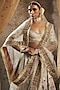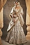 Falguni Shane Peacock features a mesmerizing Ivory Lehenga Set that captivates with its elegance. This eye-catching piece is crafted in tulle. The set includes a blouse, a dupatta, and a lehenga. Accessorize the designer lehenga set with statement jewellery for a wedding, engagement, or sangeet ceremony.