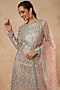 Featuring a peach kurta in tulle base with gold foil and silk thread work. It is paired with matching crepe churidar pants and a dupatta having foil detailing.