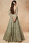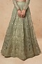 Featuring a sage green lehenga in tulle base with gold foil and silk thread work. It is paired with a matching blouse and a dupatta having foil detailing.