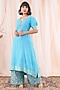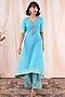 Featuring a light teal blue kurta in silk base with cutdana embroidery. It is paired with dark teal blue banarasi brocade palazzo pants and an inner. Style this designer set with statement earrings and heels for a complete festive ready-look.