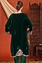 Bottle Green Velvet Sequins Embroidered Phiran Kurta Set