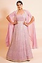 Carnation Pink Embroidered Anarkali With Cape & Belt