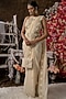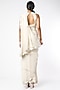 Featuring a champagne ivory saree in chanderi tissue and organza base with pearls, sequins, zardosi, and cutdana hand embroidery. It is paired with a matching blouse, a petticoat, a waist belt, and a hand bag.