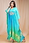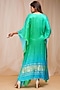 Featuring a coral blue and bright green 4D-dyed kaftan in modal satin silk base with hand embroidery.