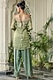 Featuring a green kurta in tissue chiffon base with 3D floral, cutdana, pearl and swarovski hand embroidery. It is paired with farshi salwar pants and a tulle dupatta. Accentuate it with kundan jewellery and heels for a festive occasion or family gathering.