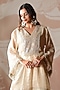 Ivory Beige Chanderi Tissue & Brocade Hand Embroidered Co-Ord Set