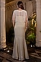 Featuring an ivory and beige fish-cut gown in tissue chiffon base with pearls, cutdana and sequins hand embroidery. It is paired with an embroidered cape. Accentuate with polki jewellery and heels for an engagement or sangeet ceremony.